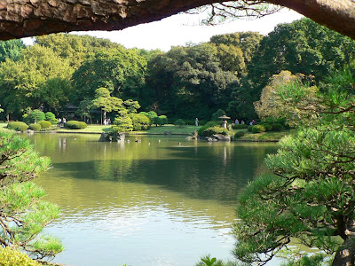Rikugien is quite a spacious garden with a central pond, islands, forested areas, man made hills and several teahouses. It takes about an hour to cover the garden's whole network of walking paths at a leisurely speed.